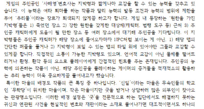 전통 스토리텔링 공모전 중, 게임 스토리텔링 분야에 도전하였다.