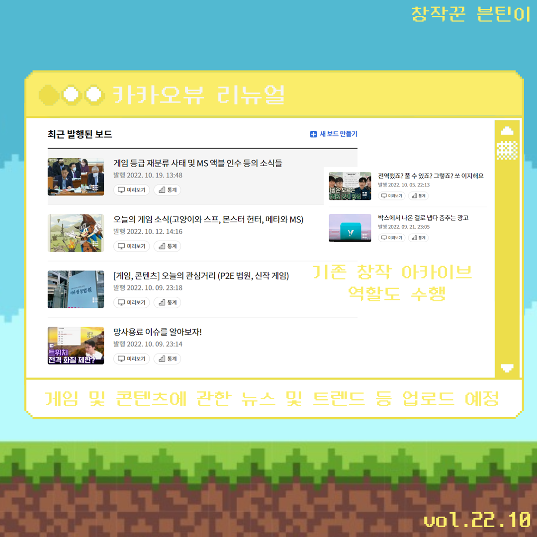 새로운 인스타 콘텐츠 및 유튜브 기존 콘텐츠 리뉴얼 및 새로운 콘텐츠 구상중이며