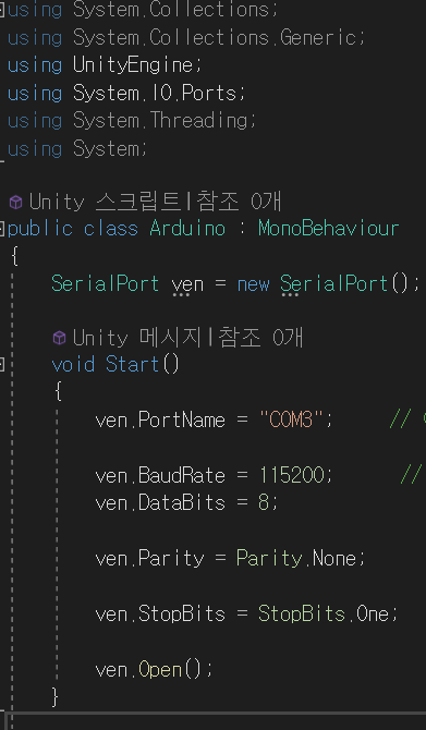 유니티 -> 아두이노 데이터 보내기