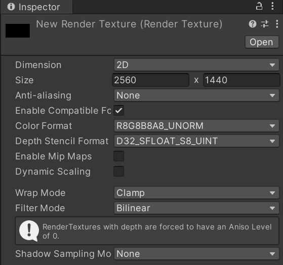 - Width와 Height로 넣을 Texture의 크기나 임의의 크기를 설정
