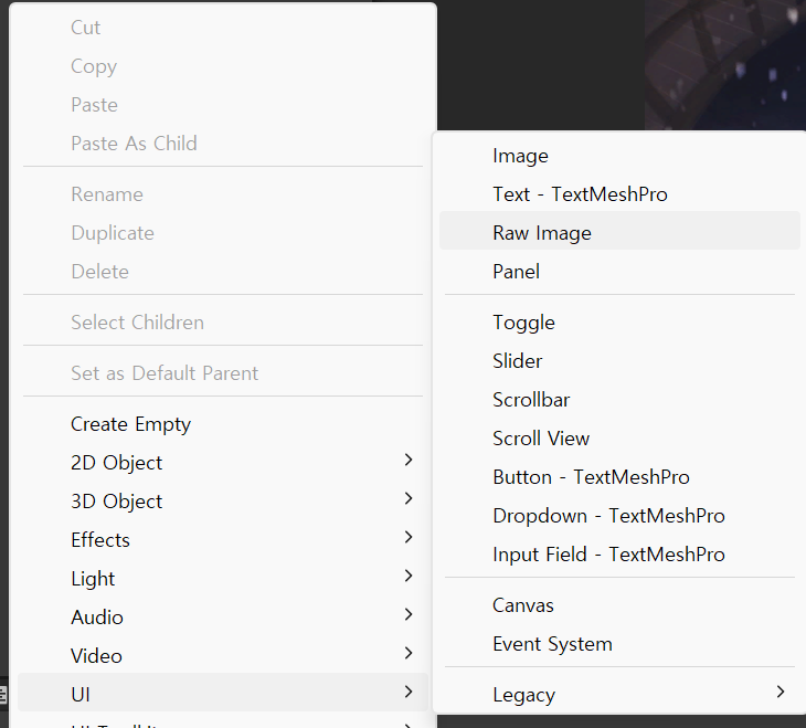 - UI -> Raw Image