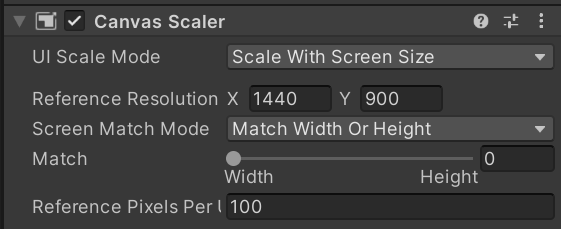 Scale With Screen Size, Match Width Or Height 설정