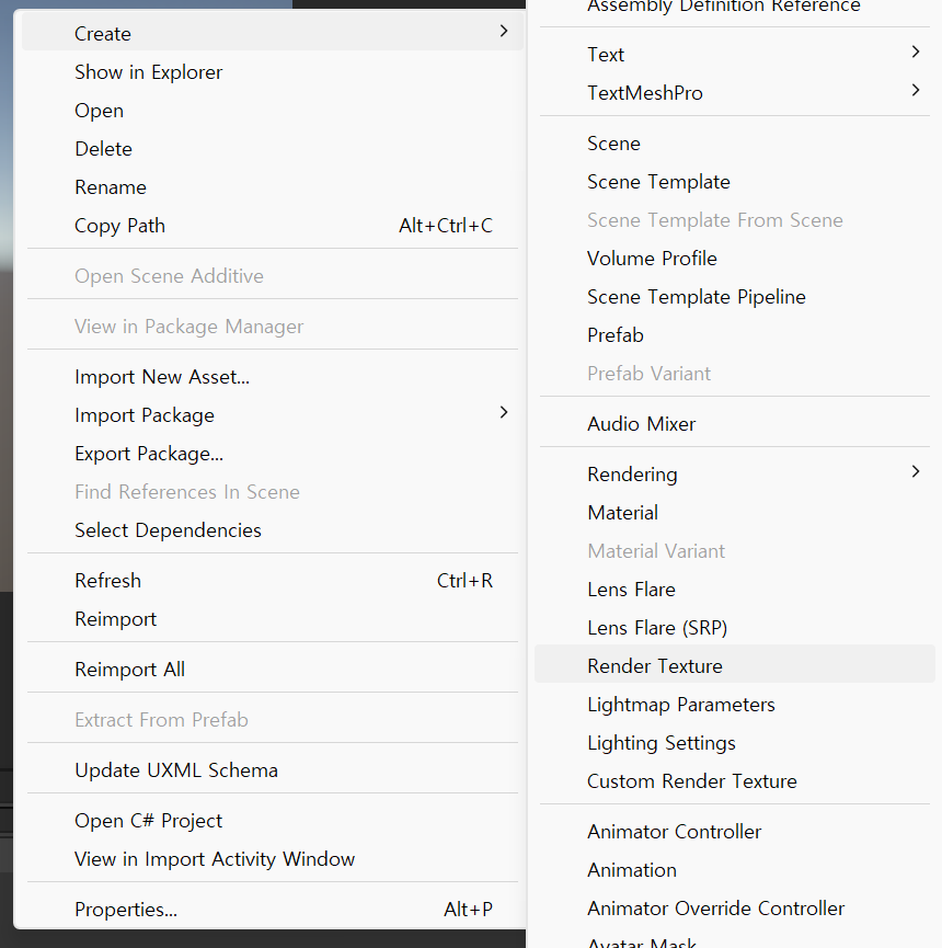 Create -> Render Texture로 프로젝트 창에 생성