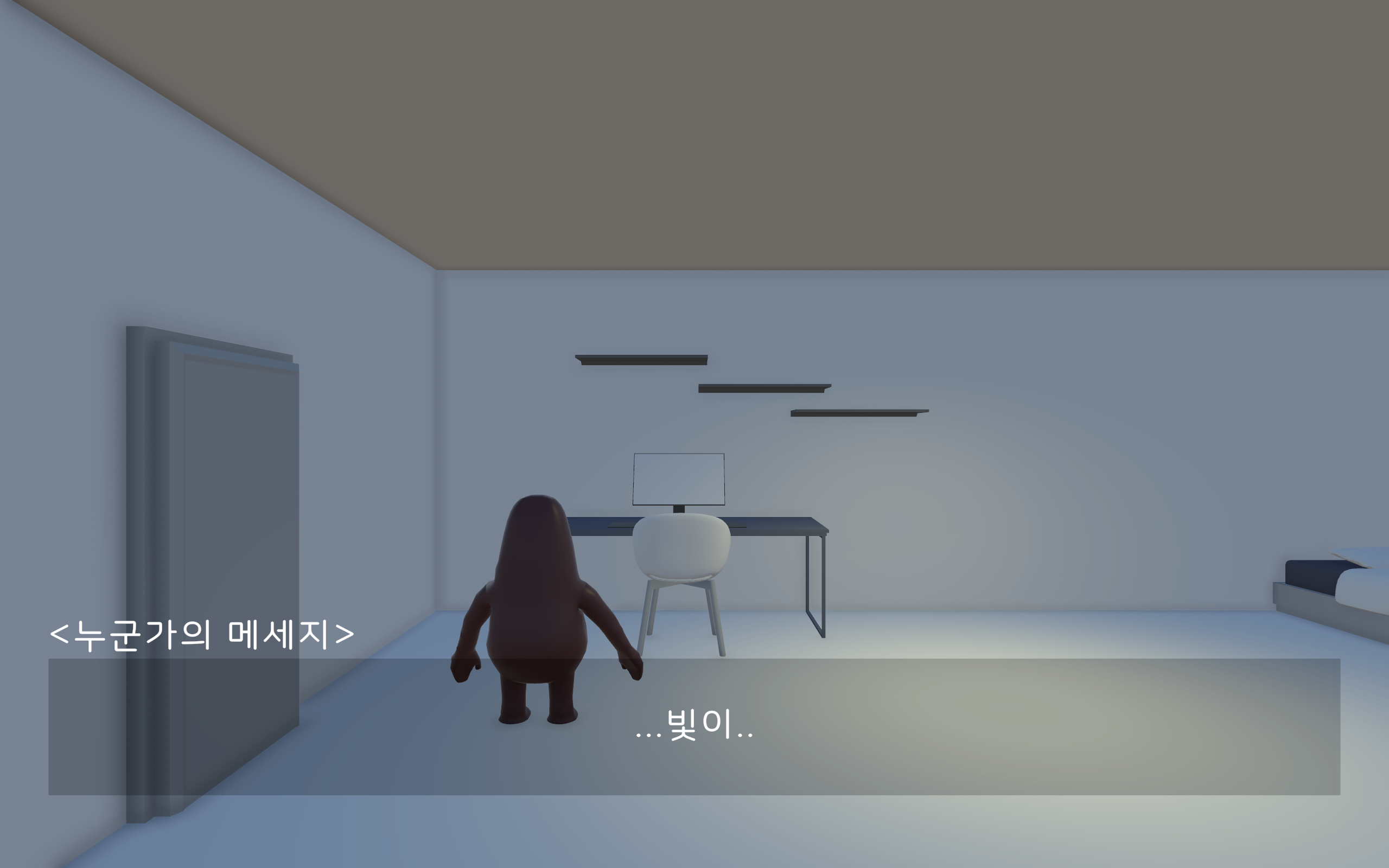 필드 내에 오브젝트와 상호작용하여 감정을 알아가고 마지막에는 마음의 문을 열고 나가는 것을 나타낸 게임.