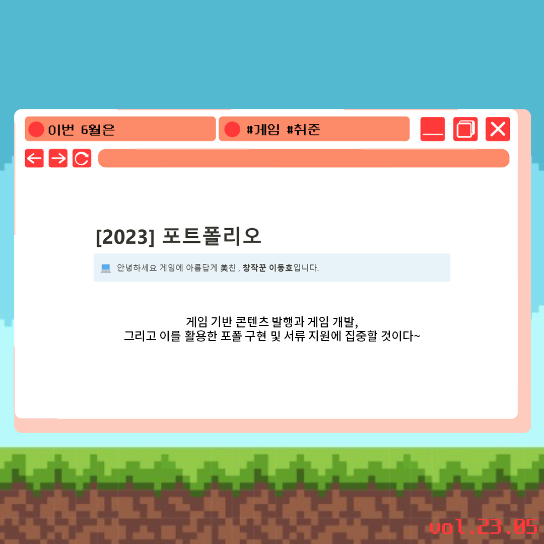 | 월간 븐틴이 2023 4월호! (졸전 중간 전시, 개인 게임 콘텐츠 발행 등) (0) | 2023.04.30 |