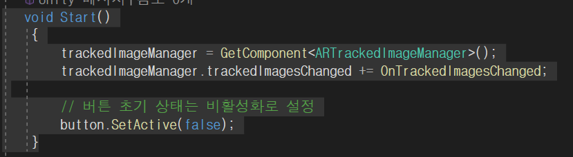 void Start()에서 trackedImageManeger 변수를 사용해 일단 초기화를 하고... 등등