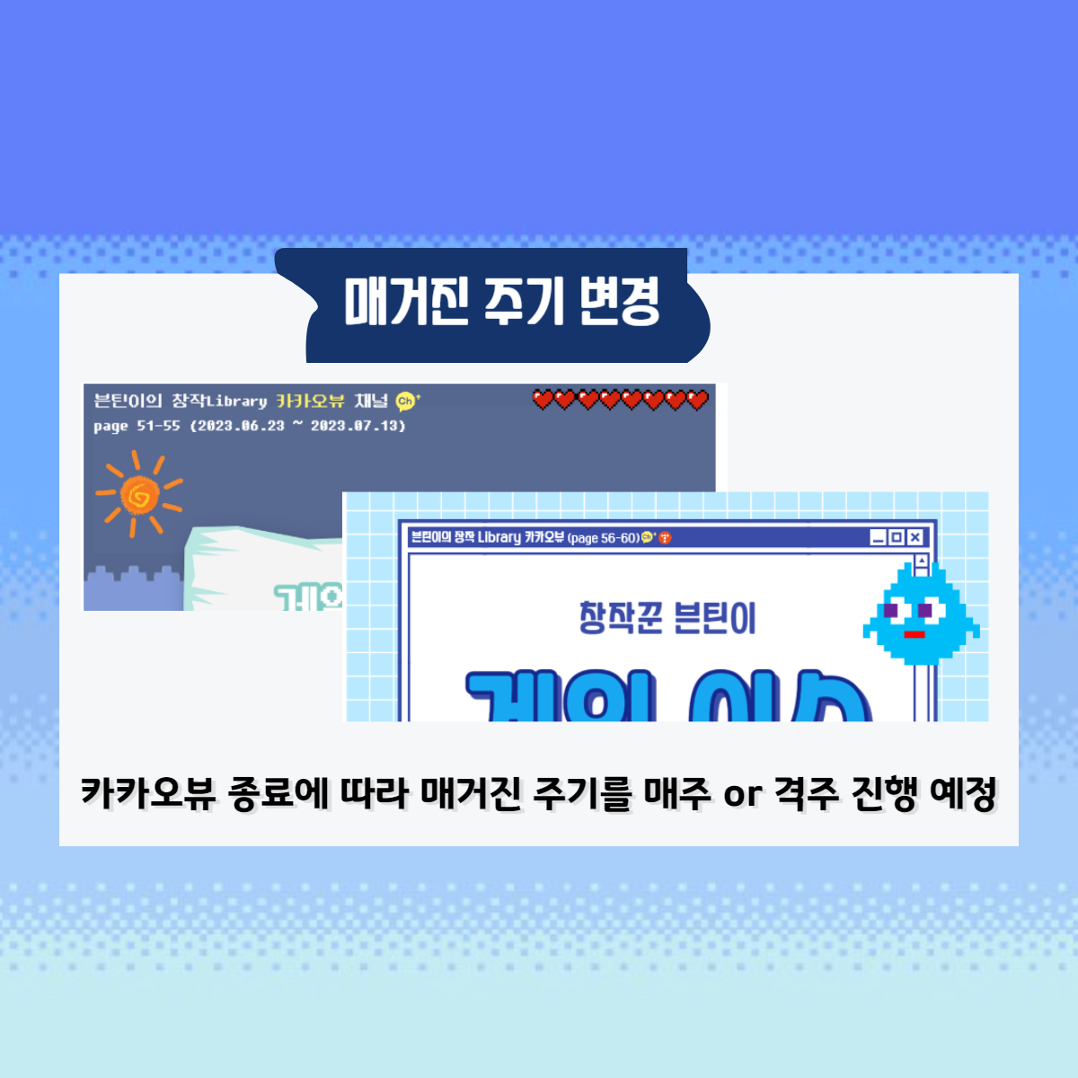 | 월간 븐틴이 2023 5월호! (졸업 전시, 단기간 게임 개발, 취준 등) (0) | 2023.06.01 |