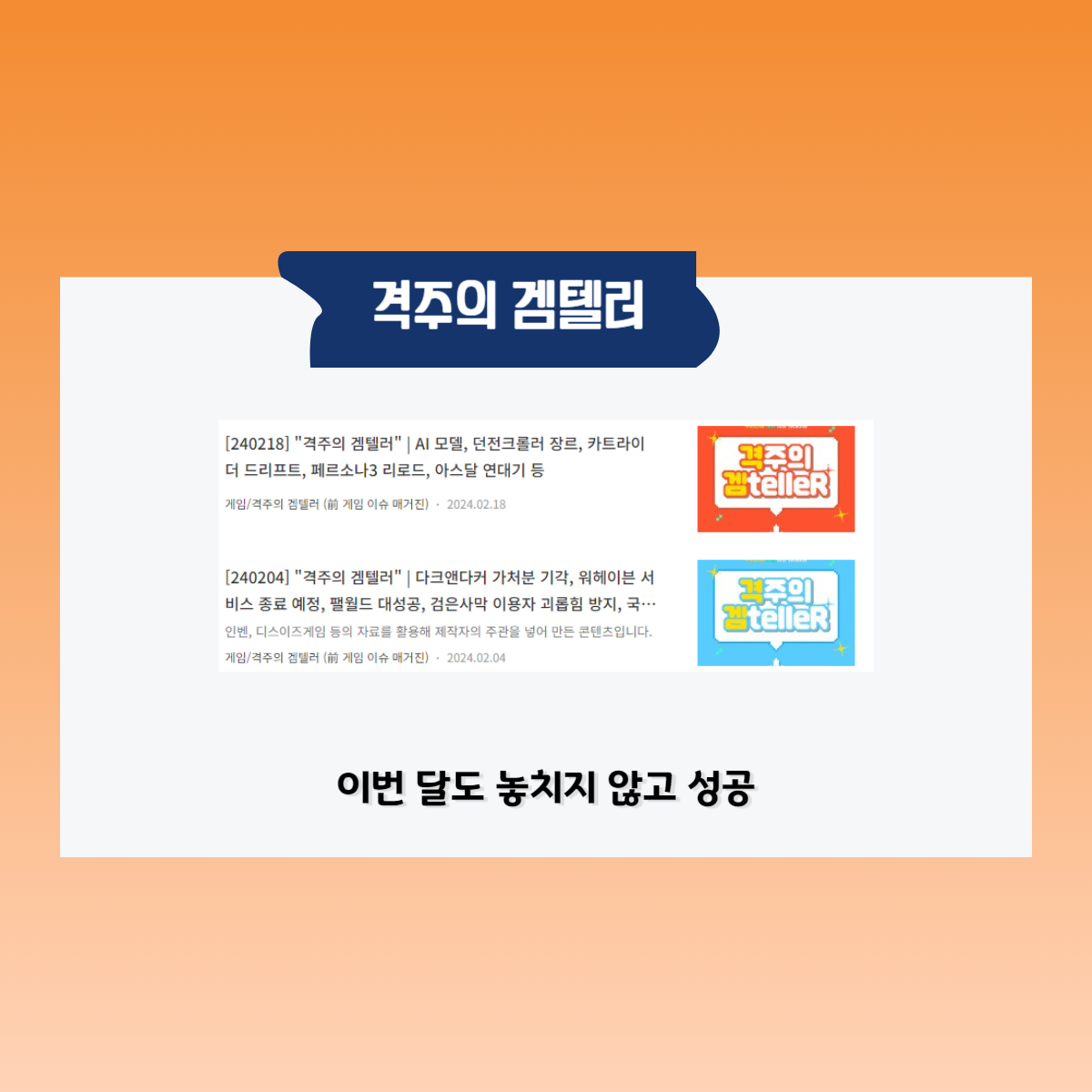 | [월간 븐틴이] 2024년 1월 | 다가오는 졸업, 게임 개발 프로젝트 하차 (0) | 2024.02.04 |