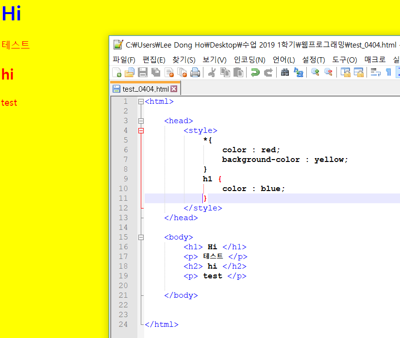 h1{color : red;} - {} 한 개의 스타일 중첩되서 적용 {} 닫고 또 적어도 됨. 그룹 반복 가능