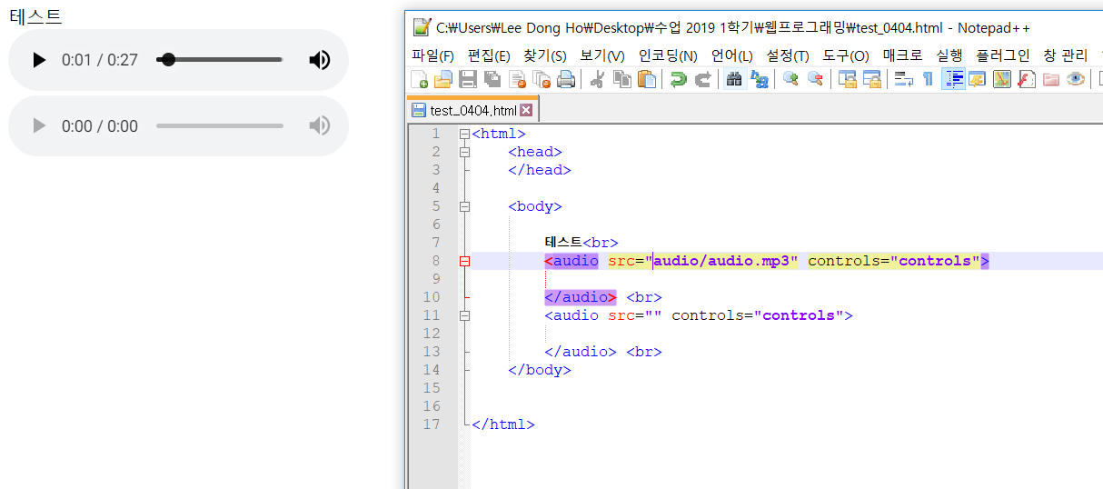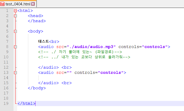 오디오 태그가 열고 닫는 형식인 이유 -> 프린트꺼 외우기